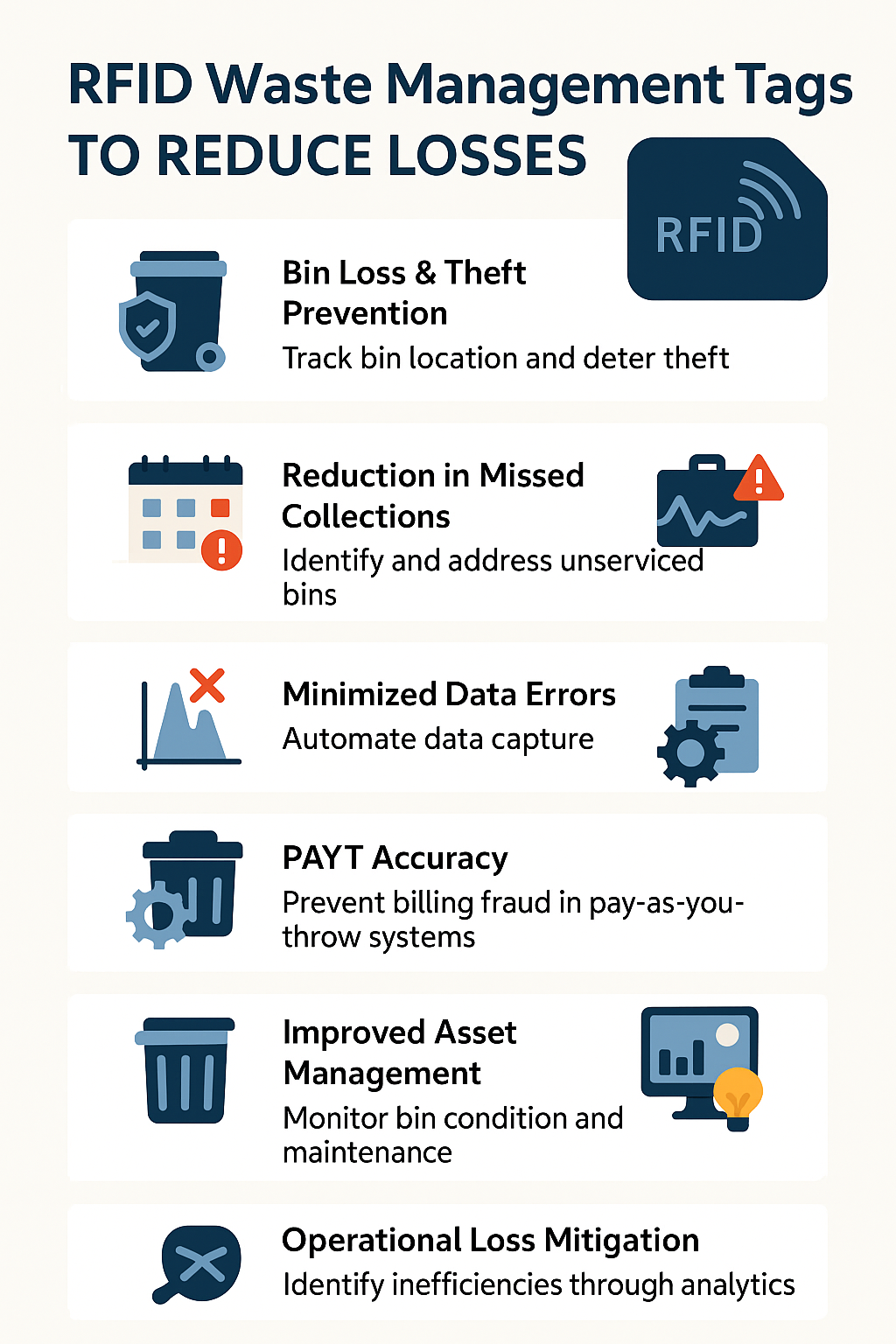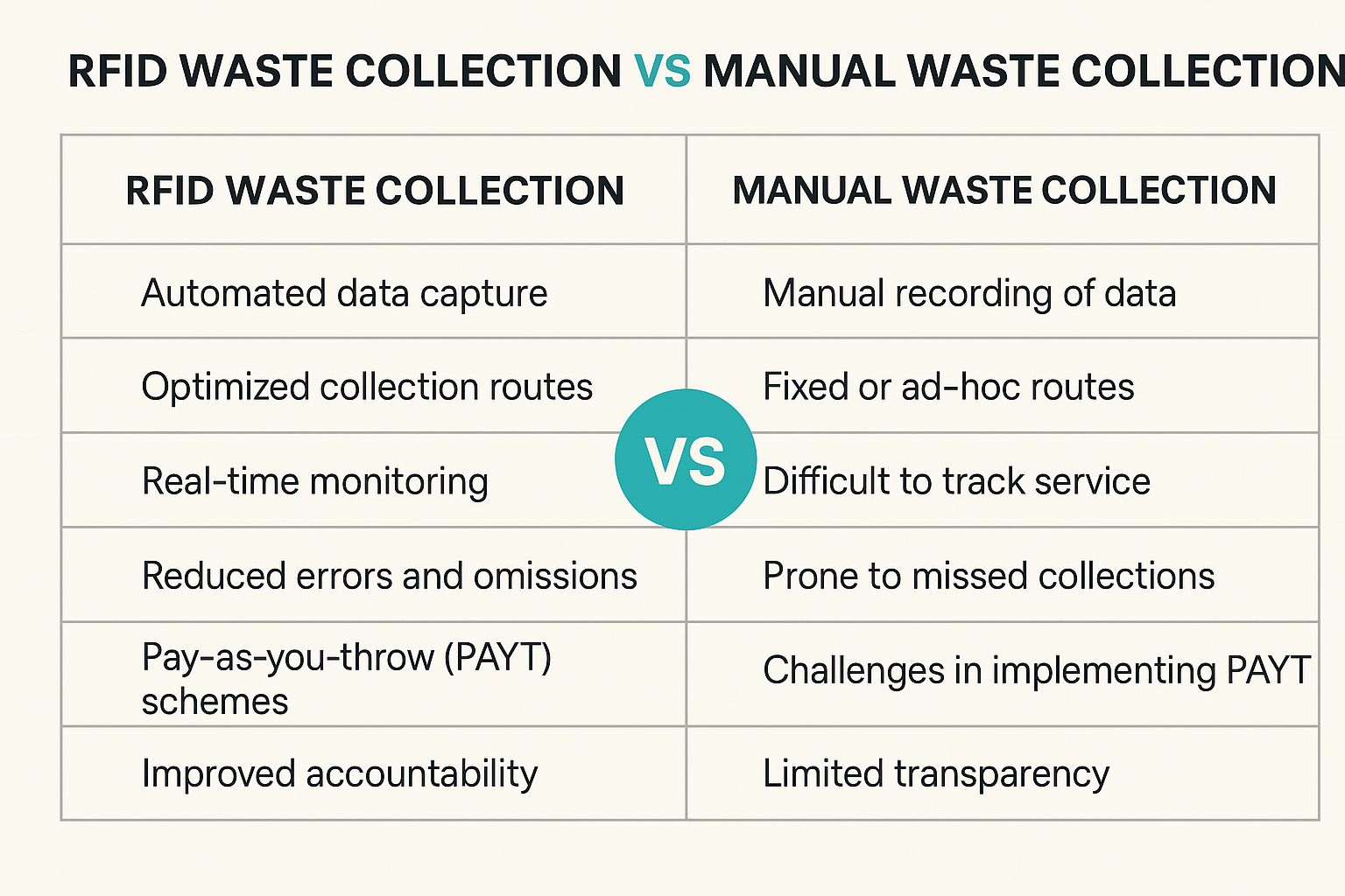 RFID (Radio Frequency Identification) in waste management refers to the use of RFID tags, readers, and software systems to track and manage the collection of waste. Each household or waste container is assigned a unique RFID tag, which is scanned automatically during collection to log service activity.