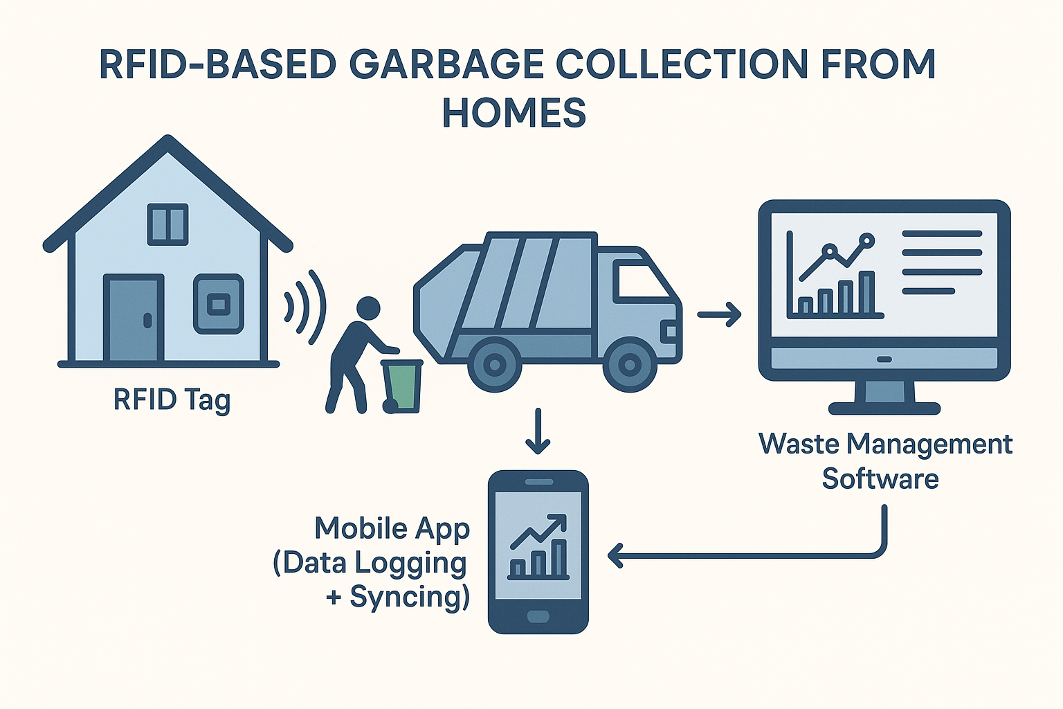 Collection & Scanning Waste vehicles equipped with RFID readers scan the tags during collection. Alternatively, field staff can use RFID handheld devices or NFC-enabled smartphones to record pickups.